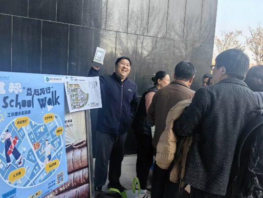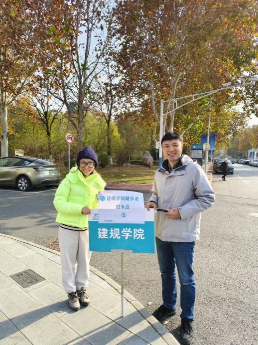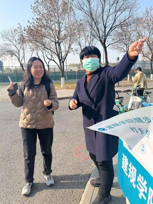 活动以人文楼东门为起点,精心规划了一条别具特色的路线。路线上巧妙地设置了3处打卡点,参与活动的教职工们完成趣味打卡的过程中既强身健体又增进了交流。该活动也进一步增强了党群组织的凝聚力,促进了建筑系和城乡规划系教职工之间的友谊和团结,让大家在繁忙的工作之余,找到了属于同事之间的温暖情谊。完成 3 处打卡后,老师们陆续回到人文楼领取纪念品,工会为大家精心准备的精美实用,象征健康和快乐的礼物既是对大家积极参与活动的肯定,也是对“益起同行”活动的美好纪念,承载着工会对教职工满满的关怀。