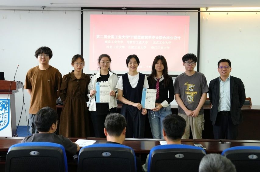 2025年5月24日,由南京工业大学主办的第二届全国工业大学"T"联盟建筑学专业联合毕业设计终期答辩在南京工业大学江浦校区博学楼举行。本次联合毕业设计围绕"南京江宁区健康产业园规划设计"这一课题展开,汇集了yl23411永利官网、南京工业大学、河北工业大学、合肥工业大学、内蒙古工业大学和浙江工业大学六所高校建筑学专业的师生。公司yl23411永利指导教师胡林、李佳楠老师作为答辩评审专家,参加了本次活动。